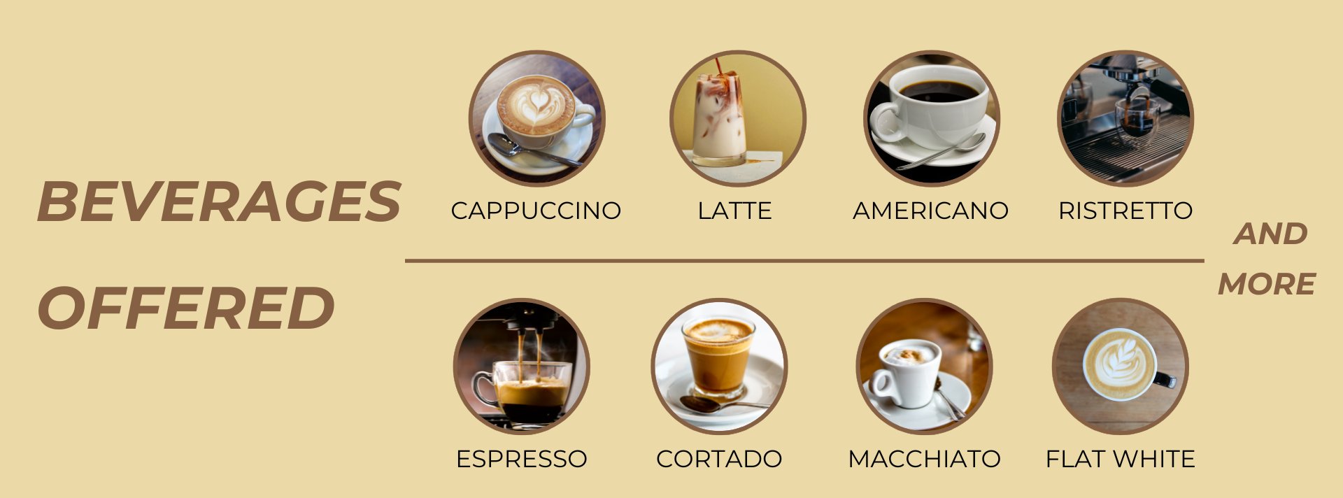 - Coffee: Coffee,Cappuccino, Coffee- Low SugarÂ